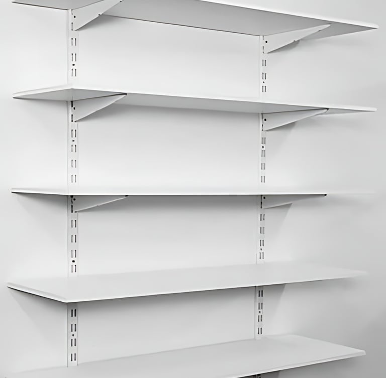 These mild steel wall-mounted racks are strong, cost-effective, and ideal for daily retail use. Powder-coated for a sleek and durable finish, they are suitable for supermarkets, general stores, and industrial setups. These racks are highly durable and allow for heavier product storage while saving floor space.